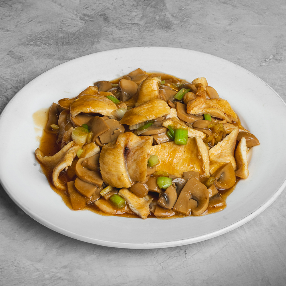 Pollo frito con champiñones y kion