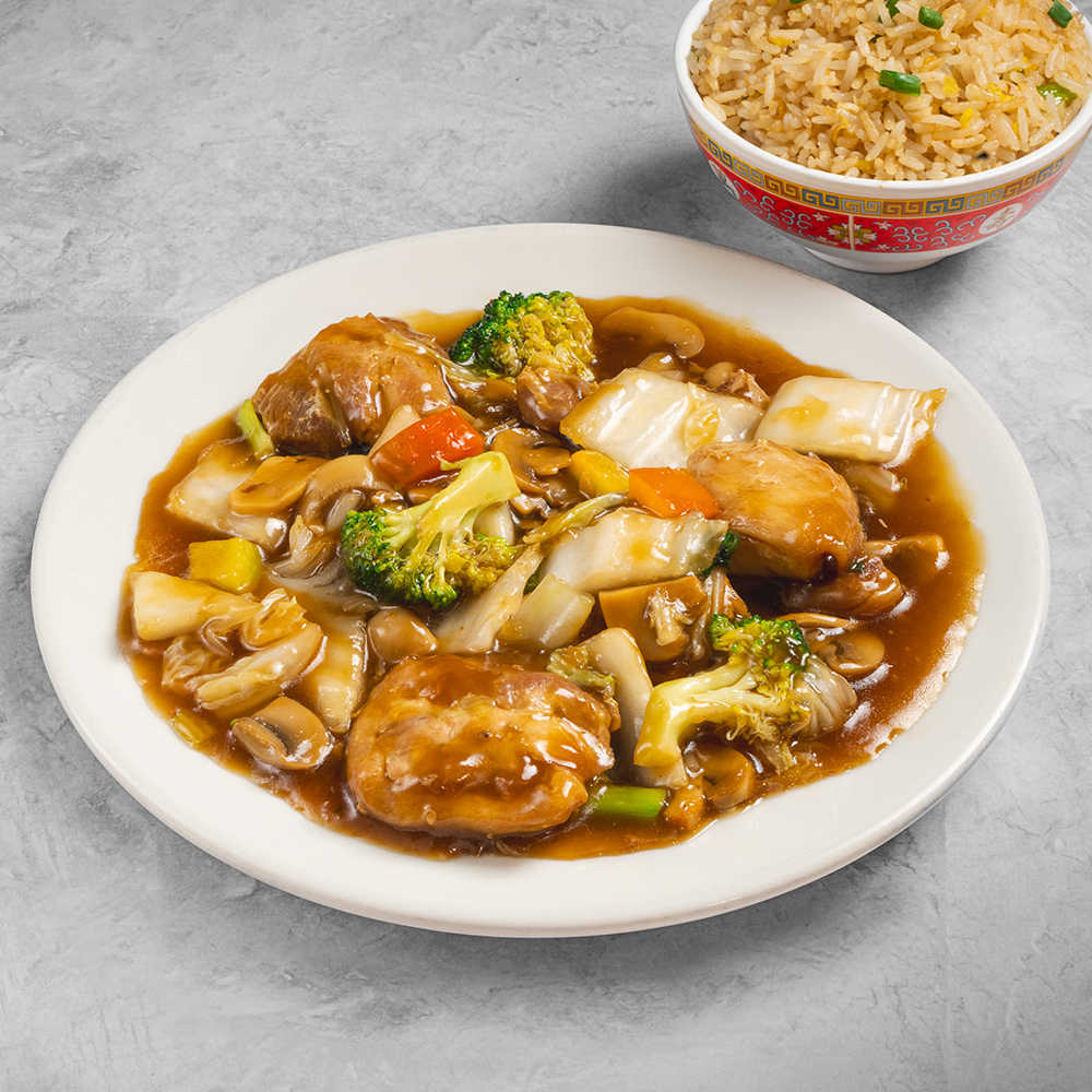Pollo con Champiñones y Chaufa – Menú